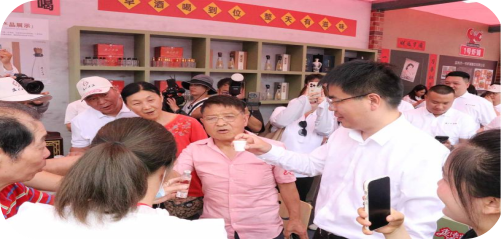 (荊州市委常委、監(jiān)利市委書記韓旭與監(jiān)利早酒文化推廣人員舉杯共飲)