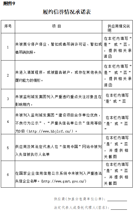 8.供應(yīng)商履約信譽承諾表(格式見附件9)。