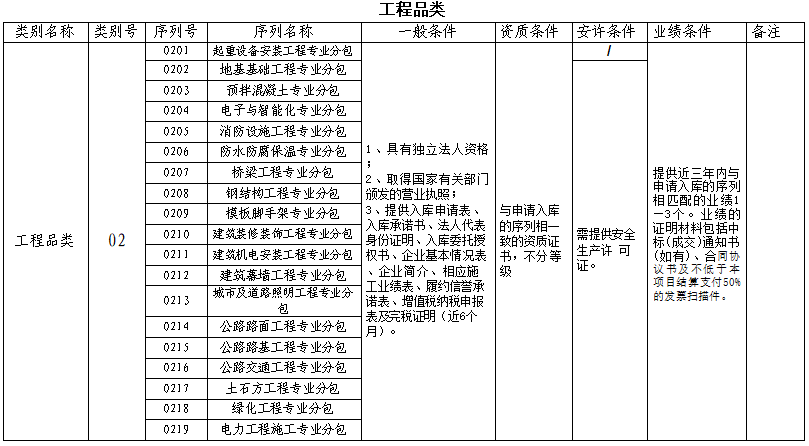 (2)選擇申請工程類及服務(wù)類兩個類別的供應(yīng)商,供應(yīng)商根據(jù)自身優(yōu)勢及資質(zhì)能力,最多可選擇專業(yè)分包類3個序列、勞務(wù)分包類2個序列同時提出申請;