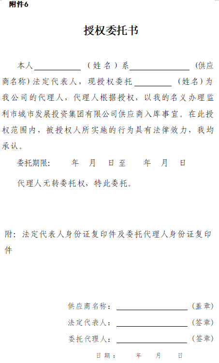 4.供應(yīng)商入庫委托授權(quán)書(格式見附件6);
