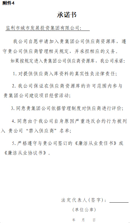 2.供應(yīng)商入庫承諾書(格式見附件4);