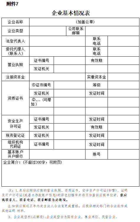 5.供應(yīng)商企業(yè)基本情況表(格式見附件7);