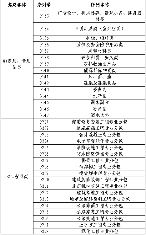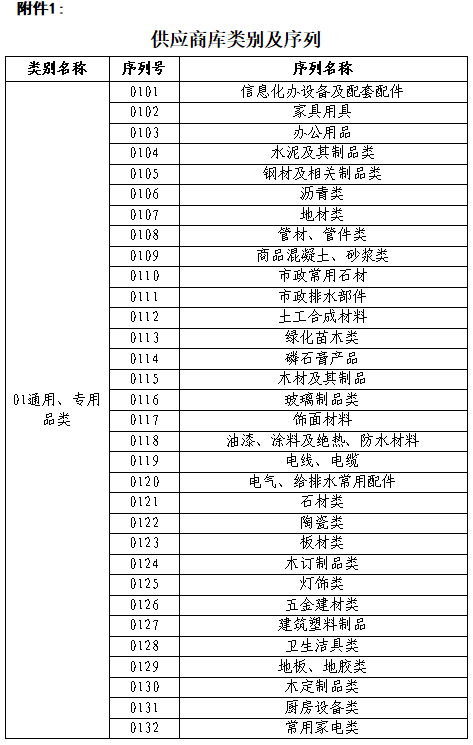 本次公告征集的供應(yīng)商庫分為3個類別,共91個序列,各潛在供應(yīng)商根據(jù)本公告的要求和自身業(yè)務(wù)開展情況合理選擇適合的類別及序列,類別及序列情況見附表1。