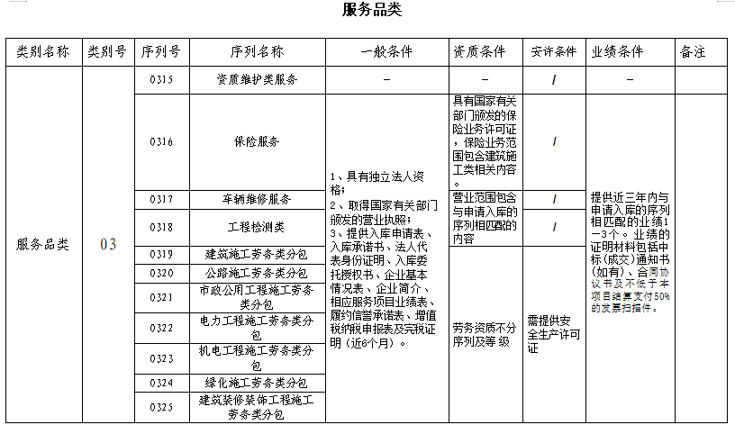 (1)選擇申請工程類或服務(wù)類別的供應(yīng)商,不得同時選擇通用專用品類別提出申請;